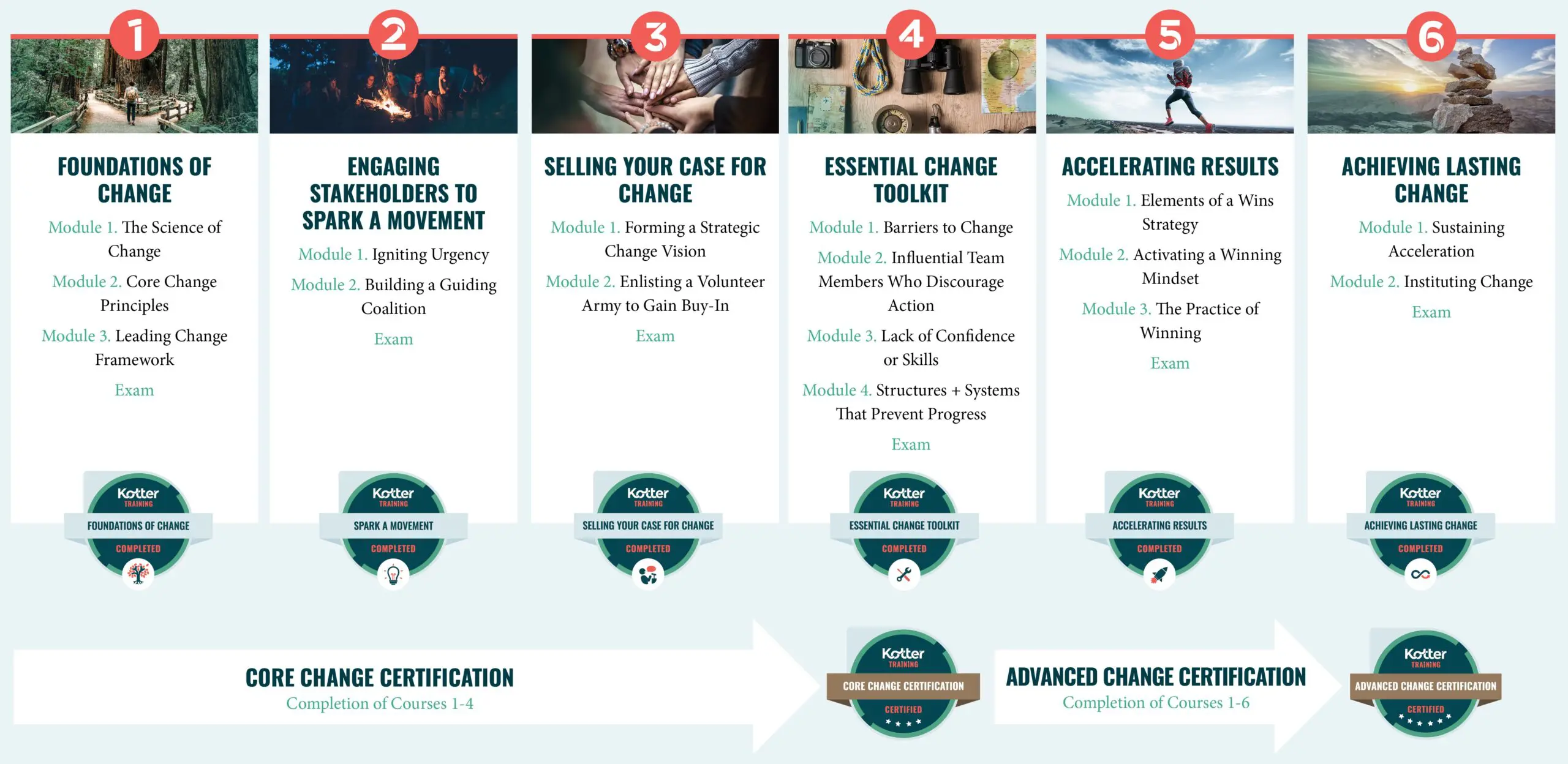How you learn matters to us. Kotter has designed three unique ways to earn your certification, so you can customize your training experience. Start with a single course or get fully certified today!
