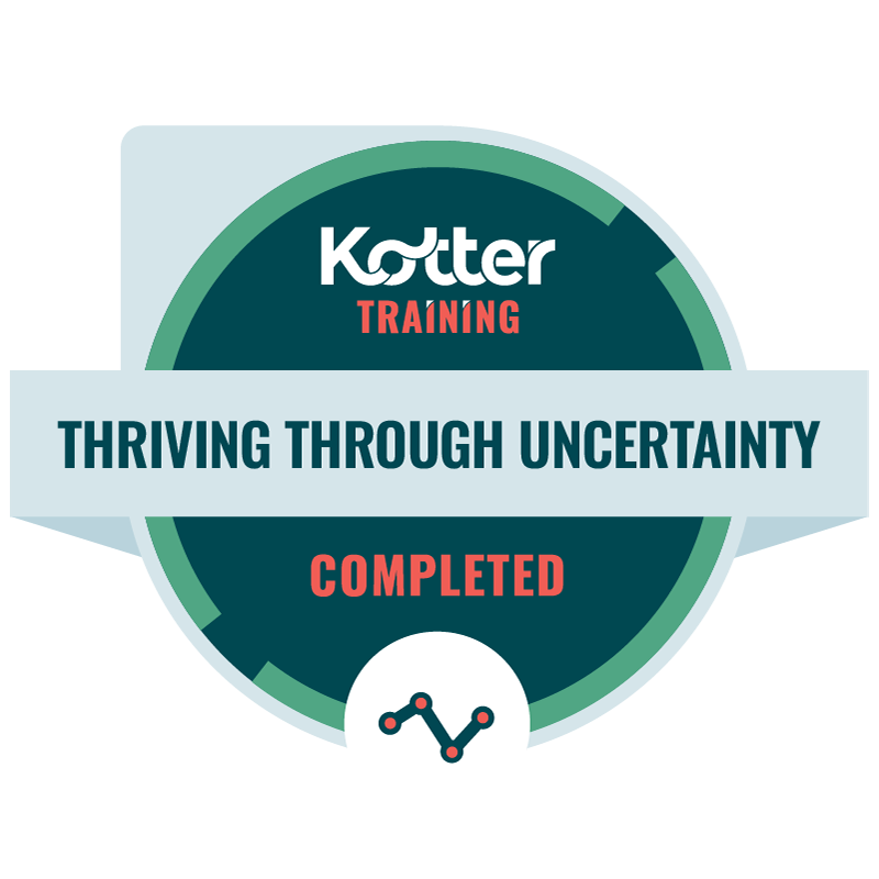 Kotter’s new standalone course, Thriving Through Uncertainty, offers essential strategies to confidently navigate—and thrive in—today’s unprecedented volatility.