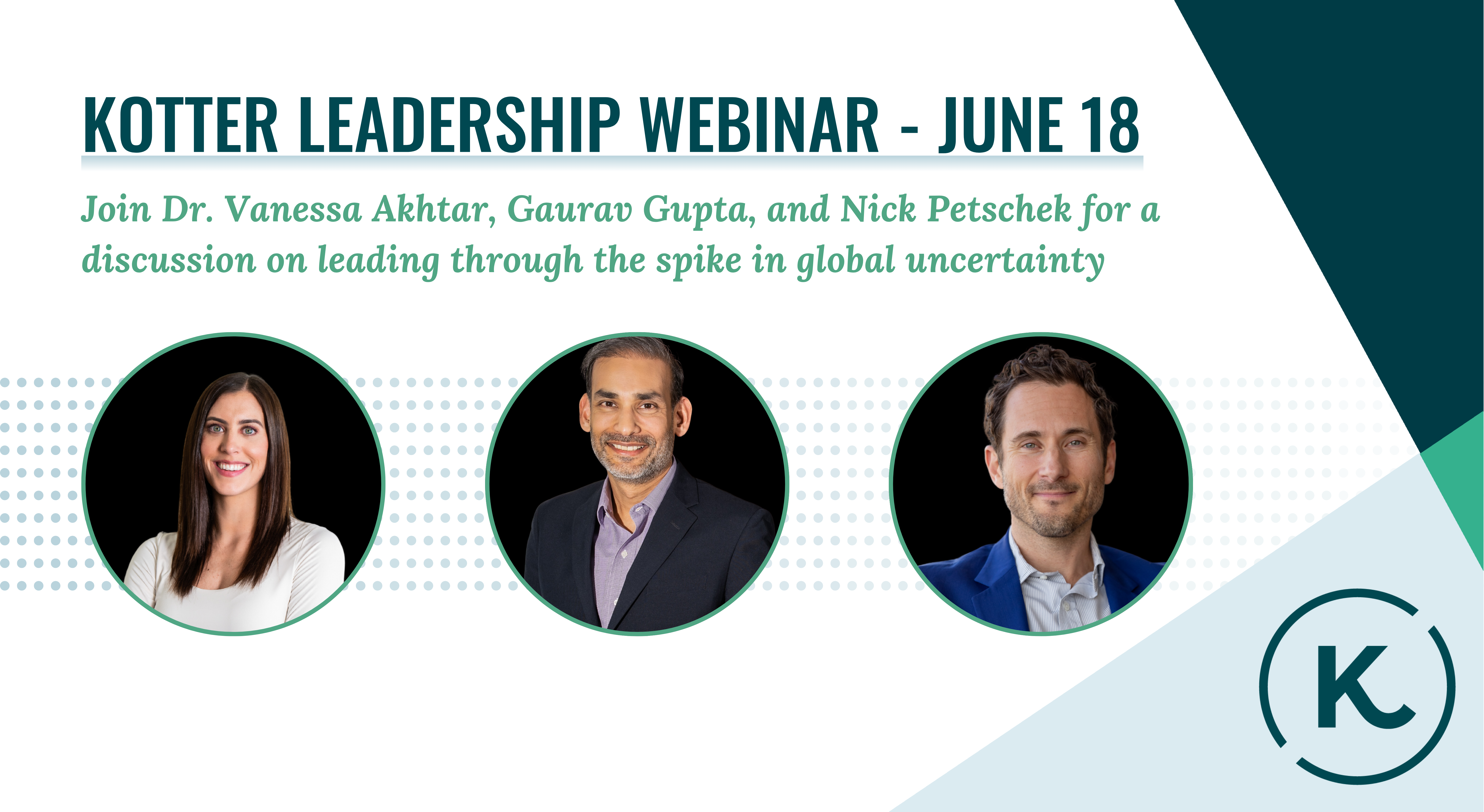 Uncertainty doesn’t just continue to grow. It’s spiking across the globe, and leaders everywhere are being tested like never before. Economic fluctuations, geopolitical tensions, and technological disruptions demand adaptability and resilience.Join Kotter’s R+D leadership team – Gaurav Gupta, Dr. Vanessa Ahktar, and Nick Petschek – as they delve into the science and strategy of leading through uncertainty.
